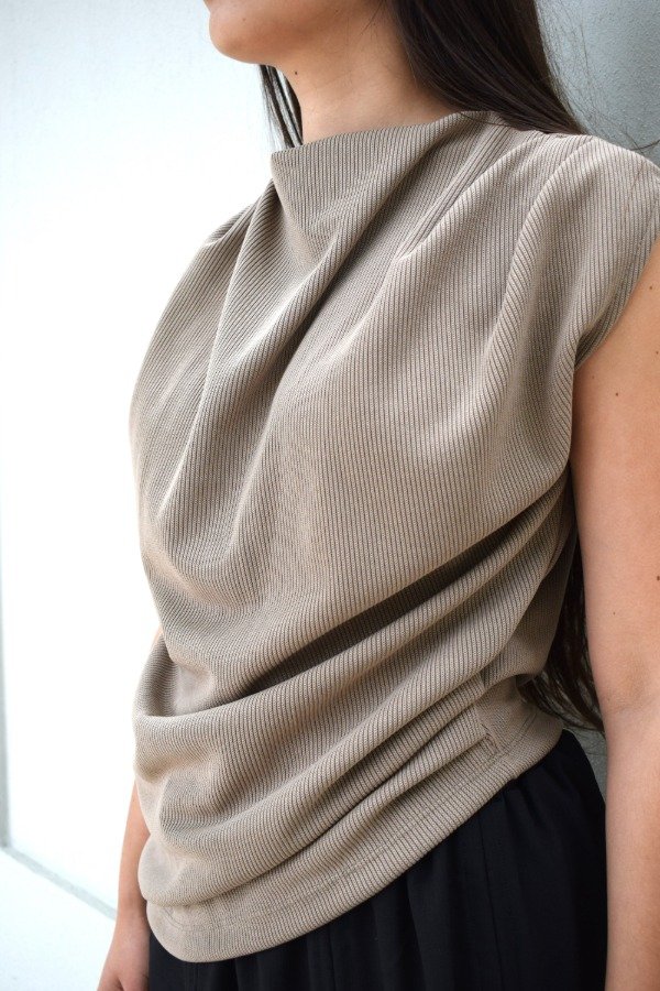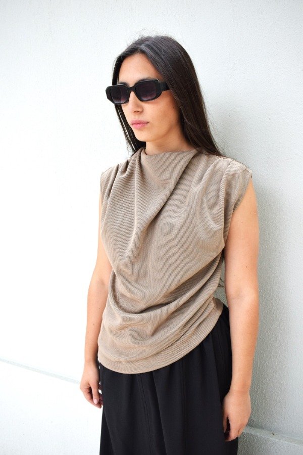 No es una musculosa, no es una remera... es una blusa con pliegues que conforman un drapeado hermoso y único.